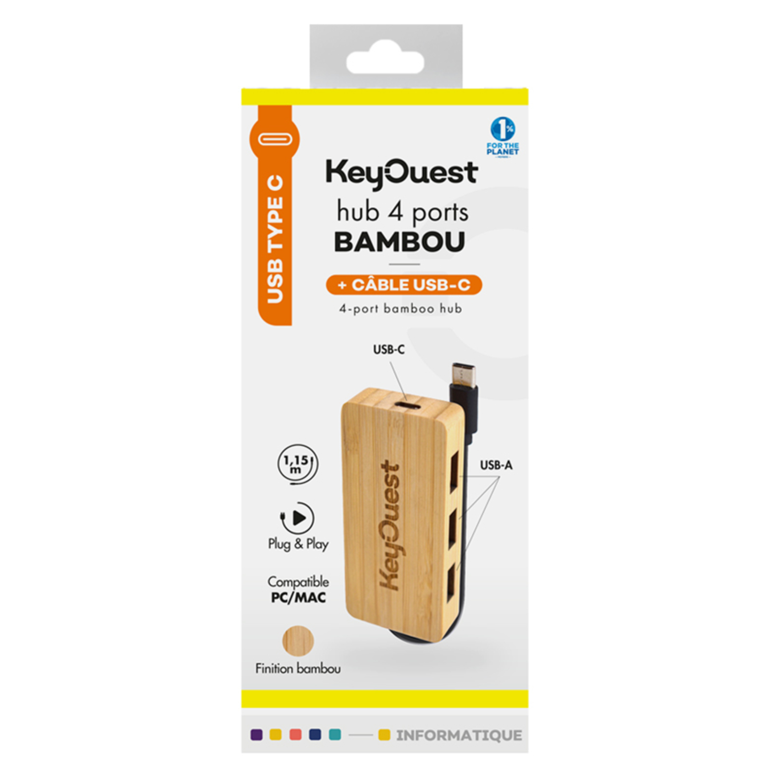 HUB USB BAMBOU 4 PORTS + CABLE USB-C