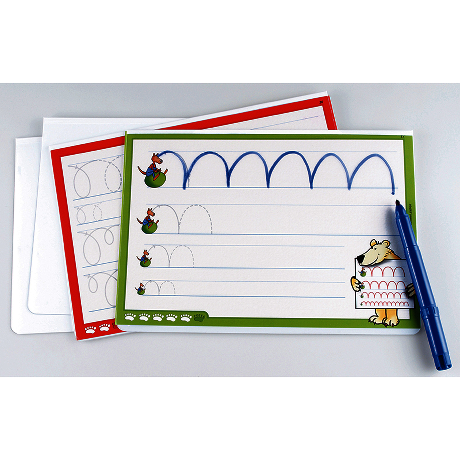 Fonctionnent avec des crayons à papier, crayons de couleurs et feutres effaçables à l'eau. Les tracés s'effacent avec une gomme ou un chiffon humide.• L/l ardoise : 30 x 21 cm.