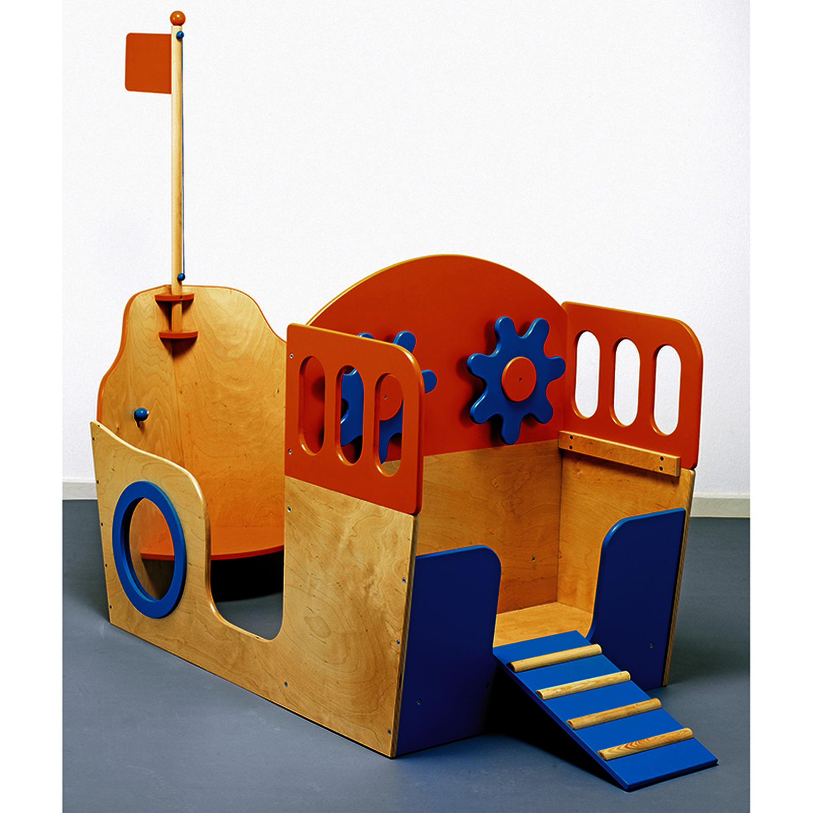 Un grand bateau équipé de multiples accessoires de jeu. La passerelle se place à l'arrière ou sur le côté.• Un grand bateau équipé de multiples accessoires de jeu. La passerelle se place à l'arrière ou sur le côté.