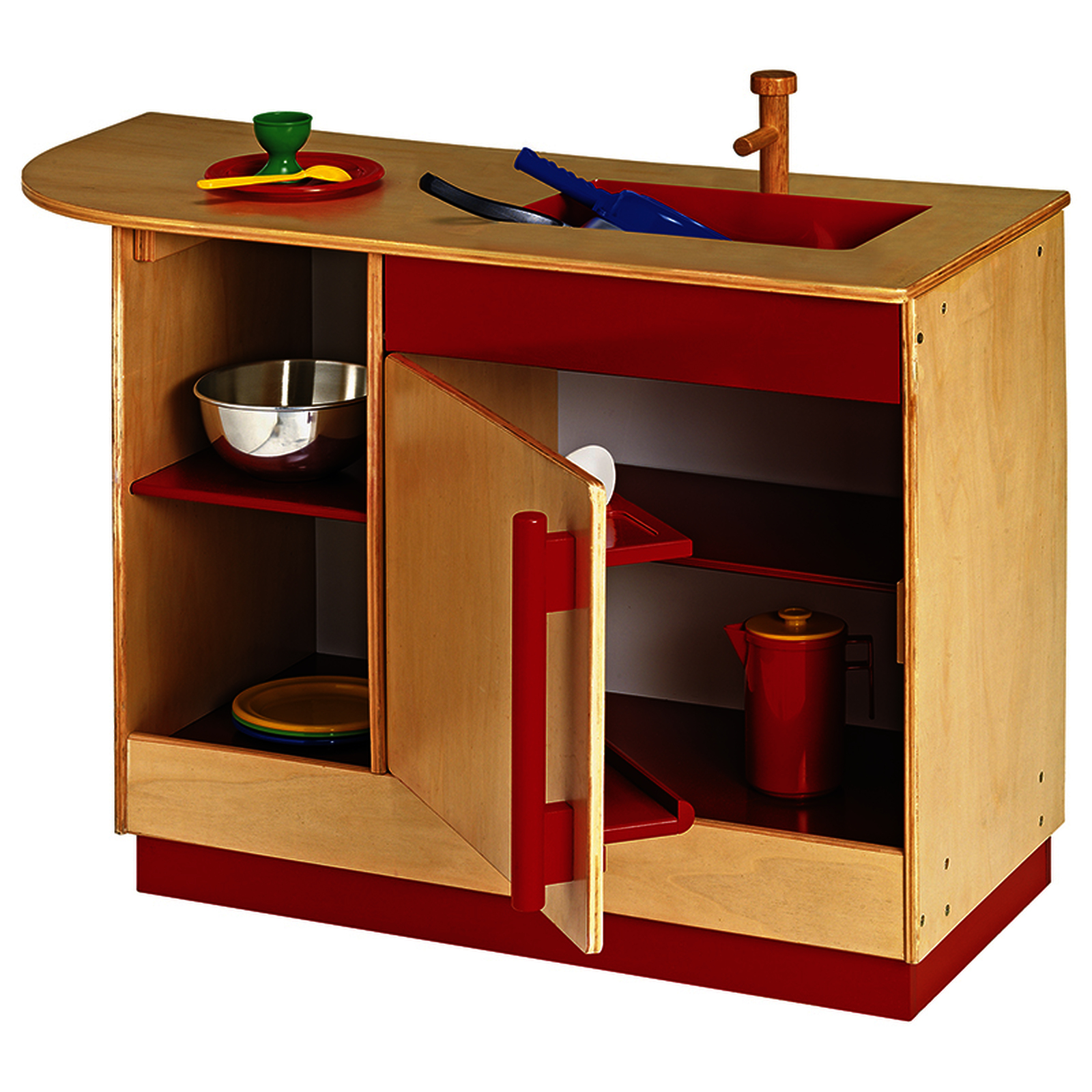 1 évier, 1 réfrigérateur avec porte-œufs et range-bouteilles, 2 étagères de rangement et 1 plan de travail arrondi. La bassine de l'évier est fixée.• 7 éléments modulaires disponibles en 5 couleurs assorties.
