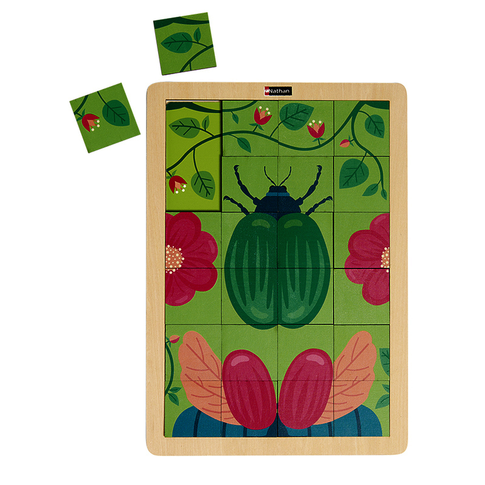 Puzzle magique composé de 24 pièces représentant deux reproductions : Le scarabée et le doryphore de C. et J. Duhautois." Le scarabée et le doryphore" de C. et J. Duhautois.