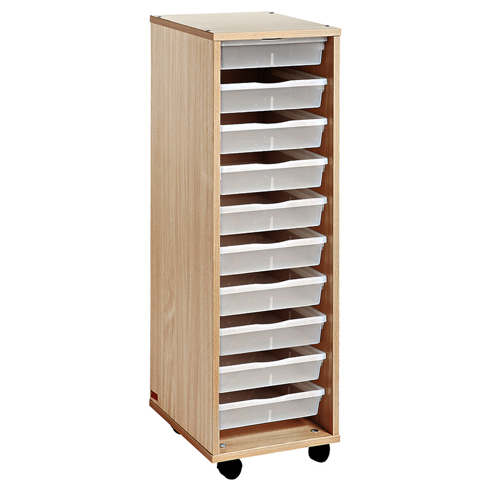 • favoriser l’autonomie des enfants.• Livrée avec 9 bacs incolores (8 plats et 1 profond) et roulettes dont 2 avec freins.