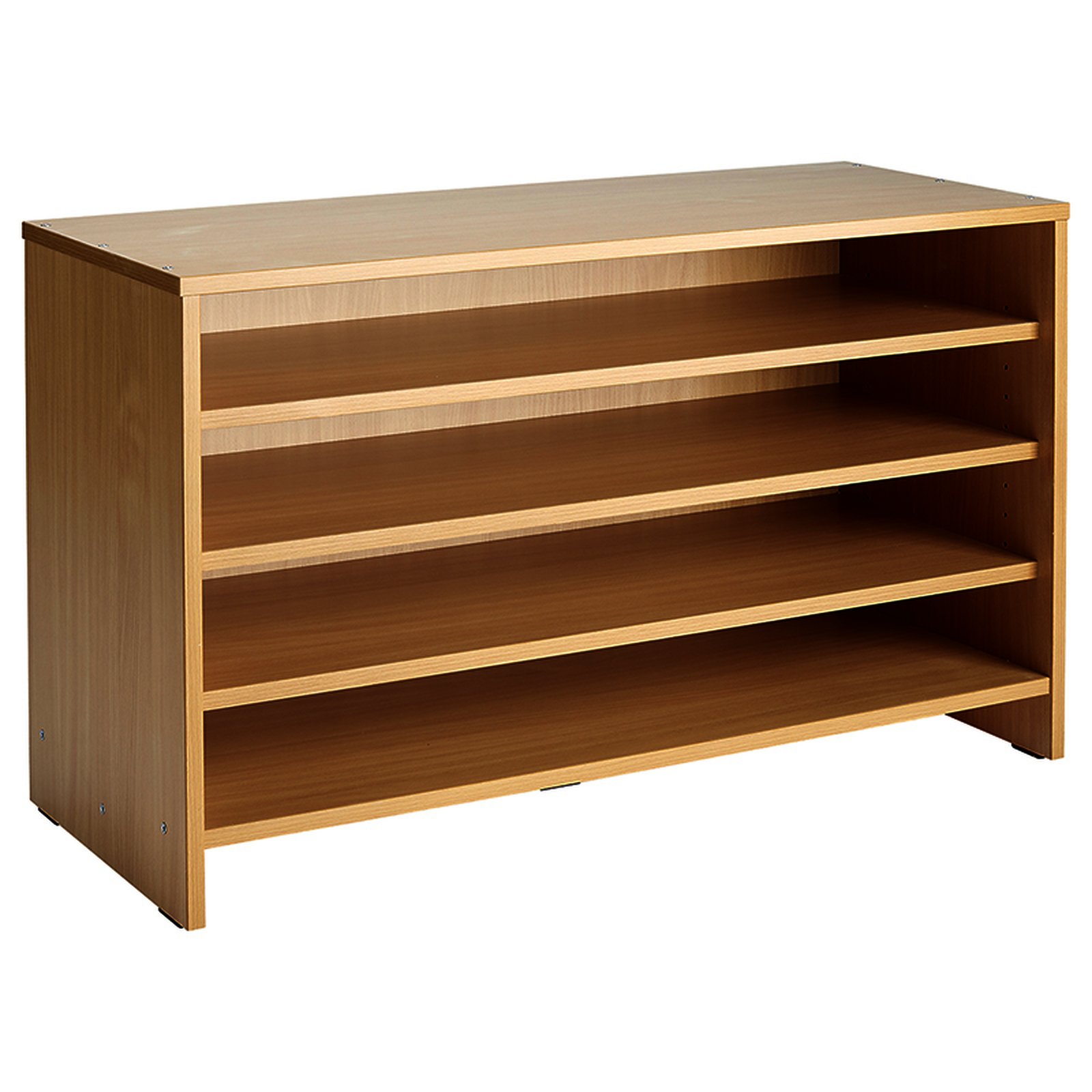 Meuble d'activités, teinte hêtre, avec 3 étagères dont 2 réglables en hauteur.Meuble d'activités, teinte hêtre, avec 4 étagères dont 2 réglables en hauteur.
