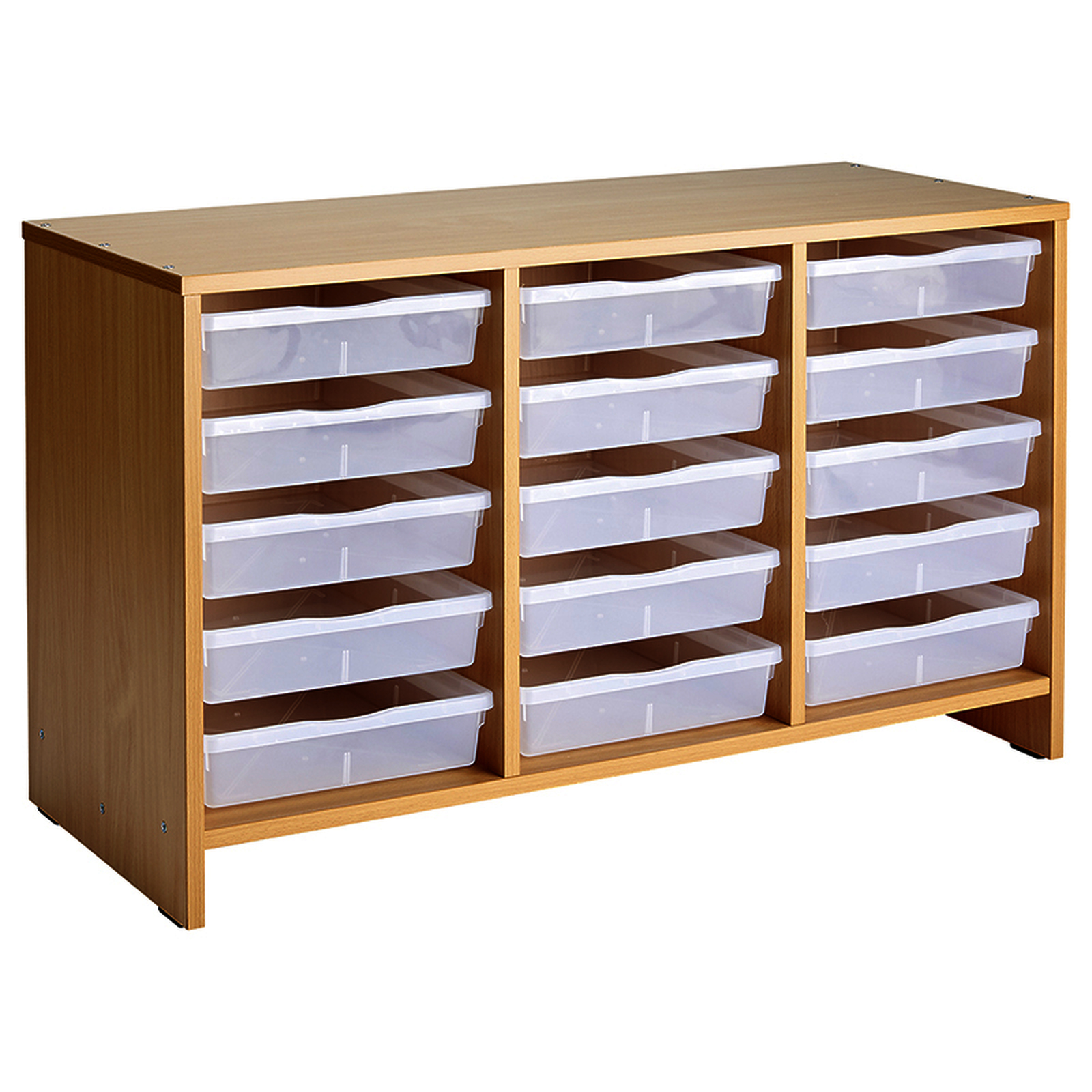 Meuble d'activités hêtre livré avec 15 bacs plats incolores.Meuble d'activités hêtre livré avec 15 bacs plats incolores.
