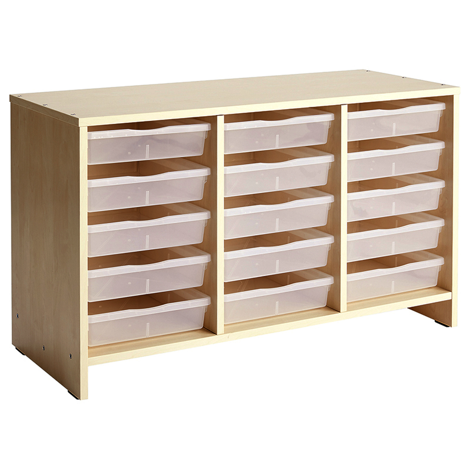 Meuble d'activités bouleau livré avec 15 bacs plats incolores.Meuble d'activités bouleau livré avec 15 bacs plats incolores.