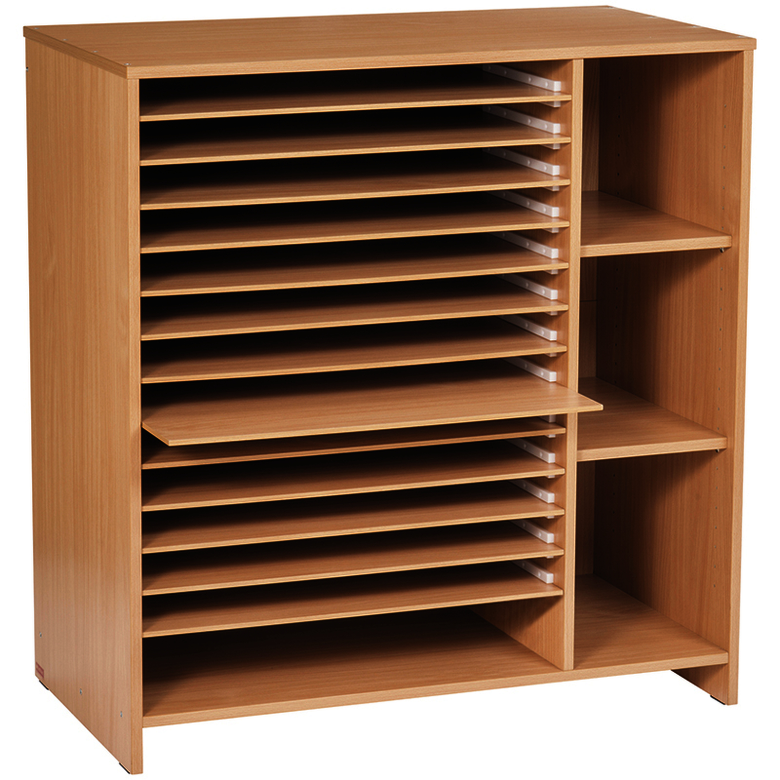 Ce meuble offre une grande capacité de stockage avec 12 tiroirs et 2 étagères réglables. Roulettes vendues séparément.Ce meuble offre une grande capacité de stockage avec 12 tiroirs et 2 étagères réglables. Il peut contenir des feuilles jusqu'au format raisin (65 x 50 cm) ainsi que des rouleaux. Roulettes vendues séparément.• L/l/H : 100 x 55 x 106 cm.