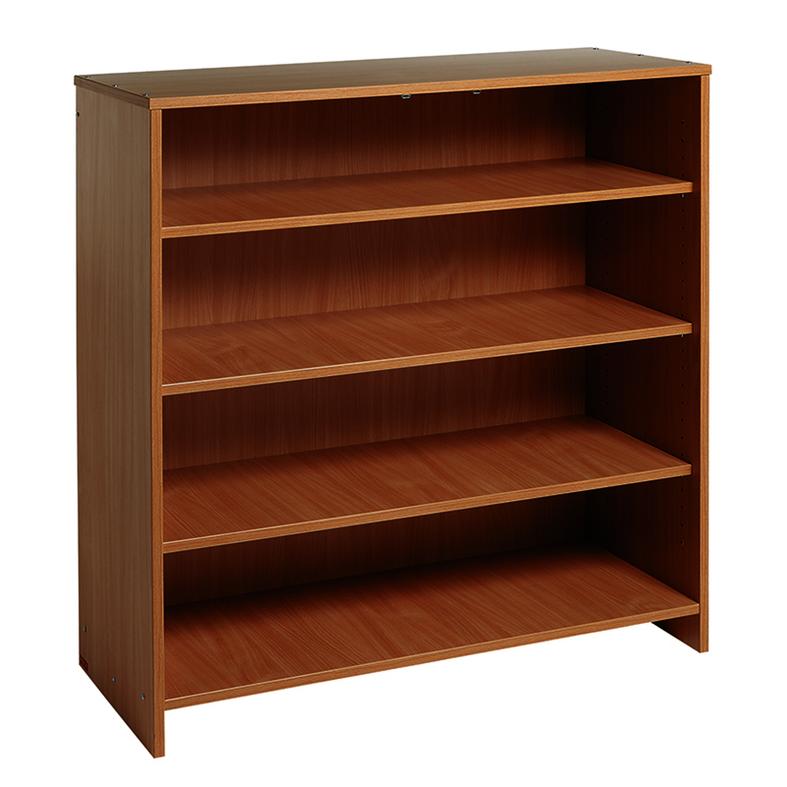 4 étagères dont 3 réglables tous les 32 mm, fixées sur taquets à visser.4 étagères dont 3 réglables tous les 32 mm, fixées sur taquets à visser.• En mélaminé teinte hêtre.