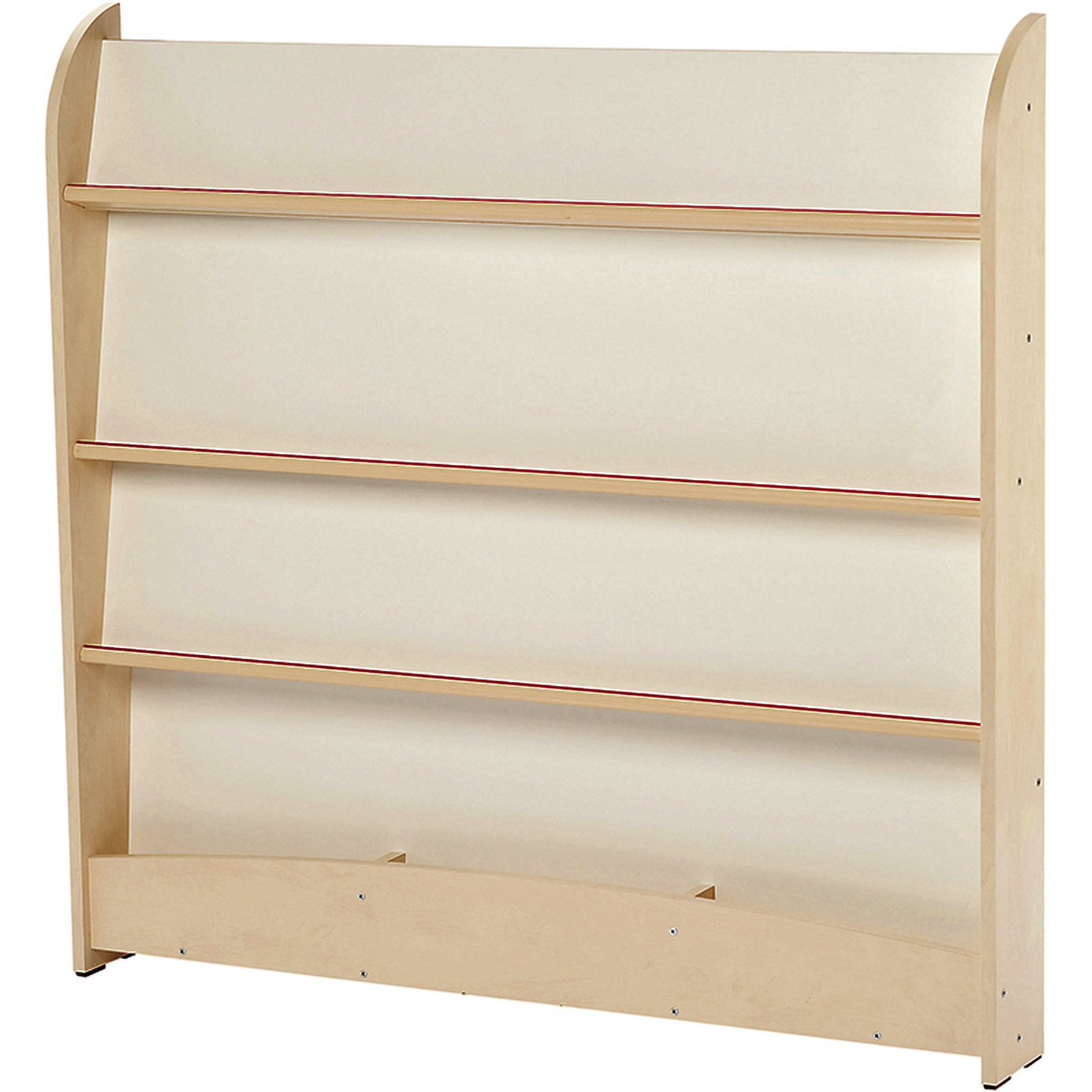 Meuble comprenant 4 niveaux à plans inclinés, dont 1 niveau porte-revues de 3 cases. Angles arrondis. Butée le long de chaque étagère pour retenir les livres. À fixer au mur ou au dos du Maxi meuble à étagères, visserie fournie.Meuble comprenant 4 niveaux à plans inclinés, dont 1 niveau porte-revues de 3 cases. Angles arrondis. Butée le long de chaque étagère pour retenir les livres. À fixer au mur ou au dos du Maxi meuble à étagères, visserie fournie.• En mélaminé teinte bouleau et blanc.