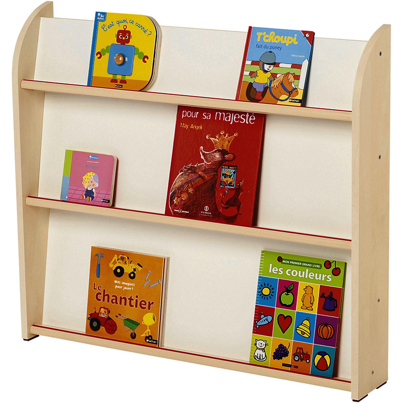Meuble comprenant 3 niveaux à plans inclinés. Angles arrondis. Butée le long de chaque étagère pour retenir les livres. À fixer au mur ou au dos du Petit meuble à étagères, visserie fournie.Meuble comprenant 3 niveaux à plans inclinés. Angles arrondis. Butée le long de chaque étagère pour retenir les livres. À fixer au mur ou au dos du meuble à étagères petit modèle, visserie fournie.• En mélaminé teinte bouleau.