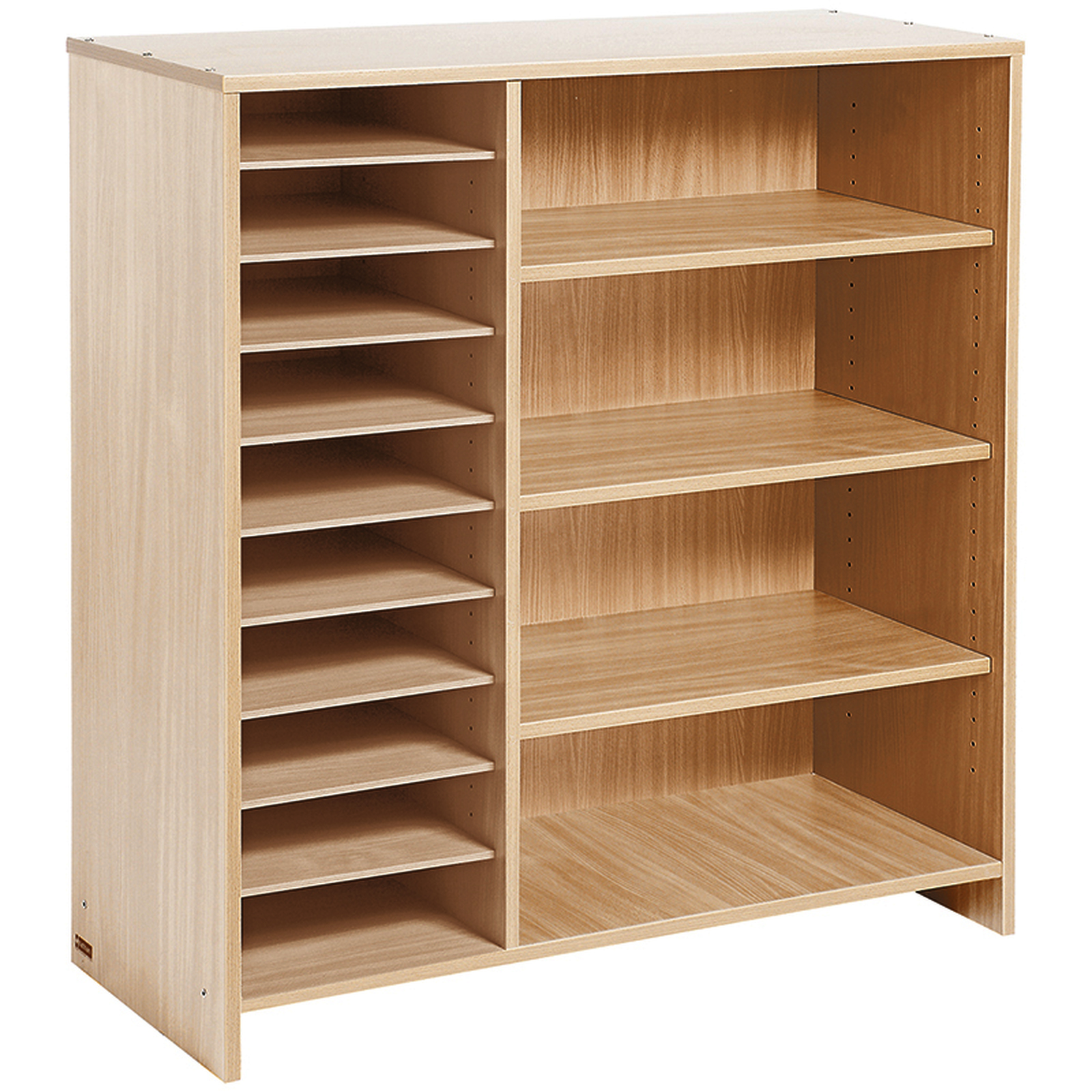Meuble à 10 cases formées par 9 tablettes et 3 étagères dont 2 réglables.• Meuble à 10 cases formées par 9 tablettes et 3 étagères dont 2 réglables, idéal pour le rangement individuel de chaque enfant.