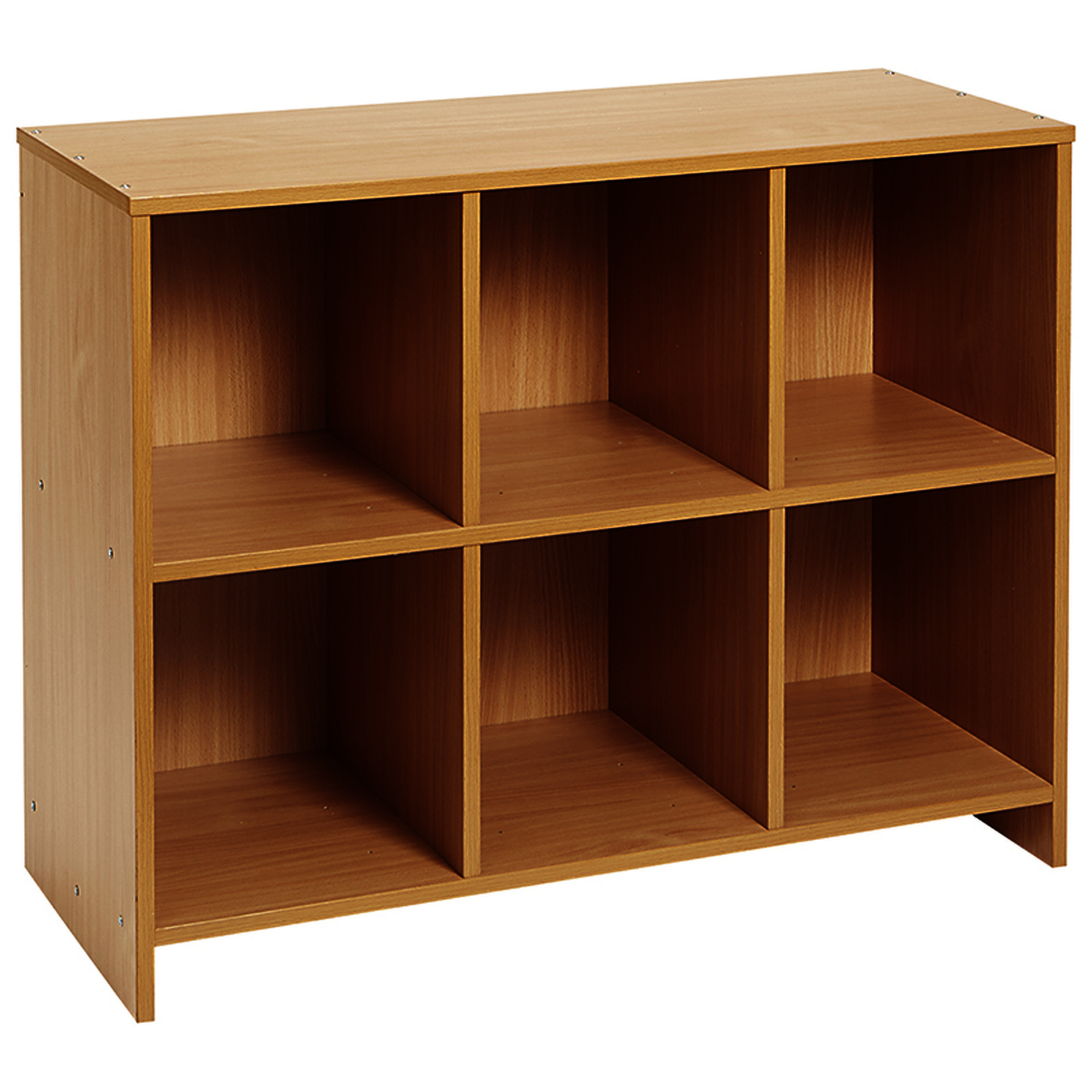 - favoriser l’autonomie des enfants.Les 6 grandes cases sont modulables pour organiser le rangement en fonction du matériel.• En mélaminé teinte hêtre.