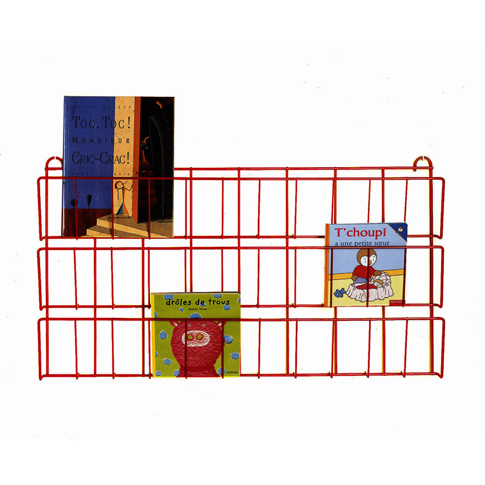 3 niveaux de présentation.3 niveaux de présentation.• Structure en fil métallique laqué époxy rouge. • L/H : 80 x 43 cm.