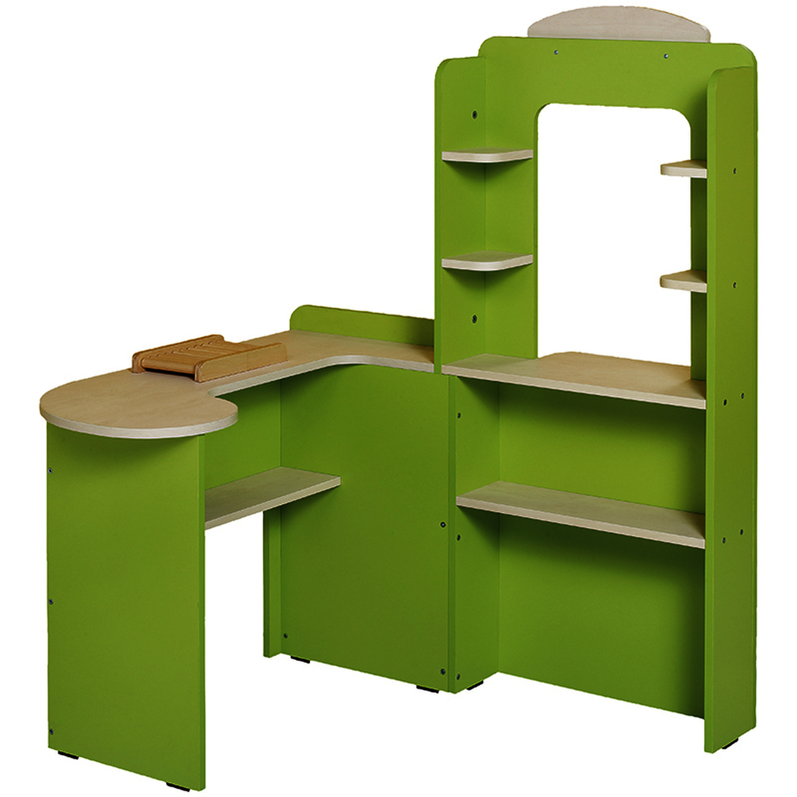 L'exposition des aliments sur étagères ou en paniers (vendus séparément) permet aussi un rangement rapide après le jeu.• Livré avec 1 tapis à rouleaux en bois massif, à visser sur le comptoir.