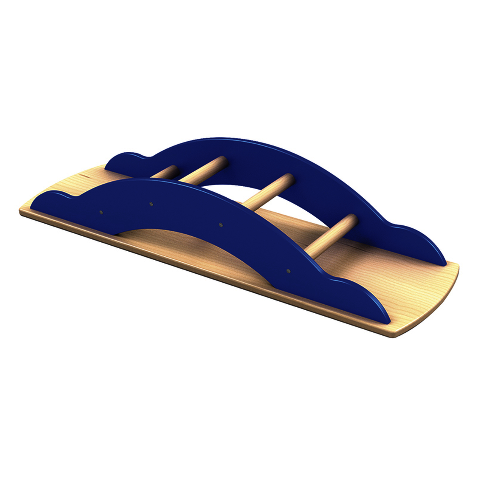 Bascule d'un côté et petit pont à barreaux de l'autre pour travailler l'équilibre et le franchissement.Bascule d'un côté et petit pont à barreaux de l'autre pour travailler l'équilibre et le franchissement.• En bois massif et contreplaqué, vernis incolore et bleu.