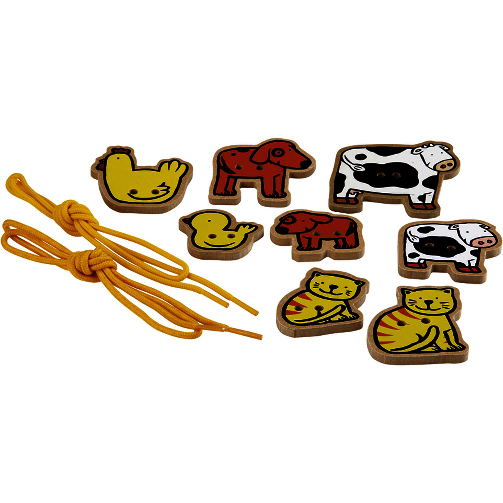 • 8 pièces en bois et 2 lacets.