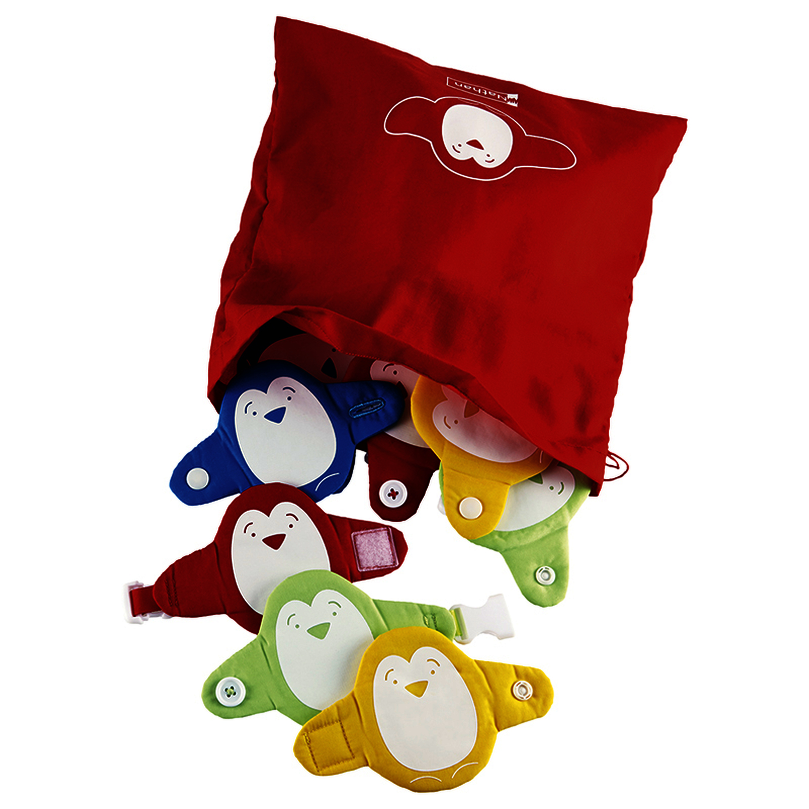 En 4 couleurs, ils s’attachent les uns avec les autres.• 16 pingouins et 1 sac en tissu.