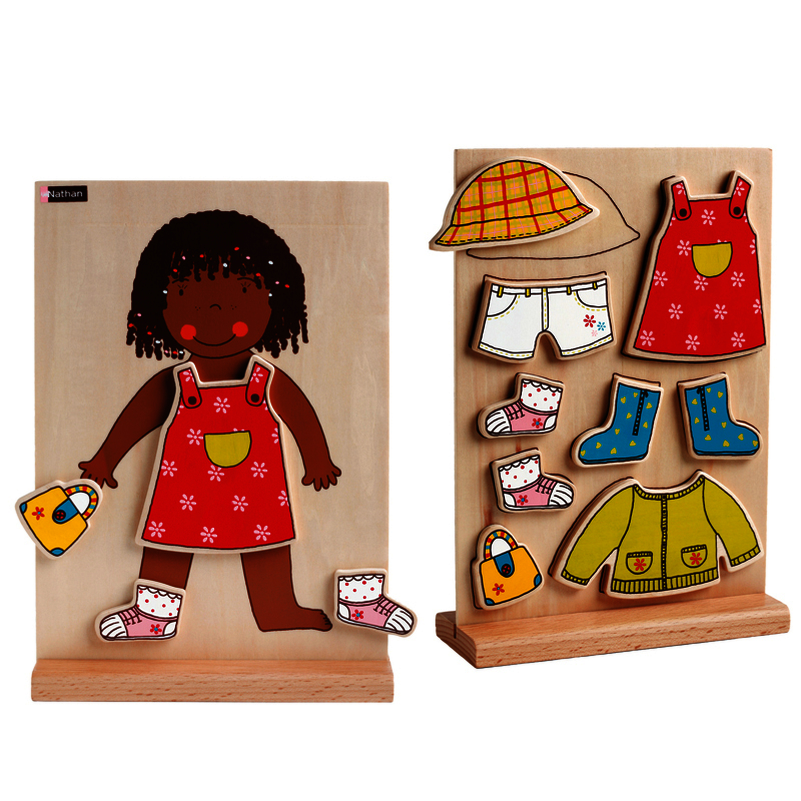 Une petite fille à habiller avec ses vêtements. Le panneau et les pièces sont magnétiques.- Jeux magnétiques en bois à manipuler sur le plan vertical.