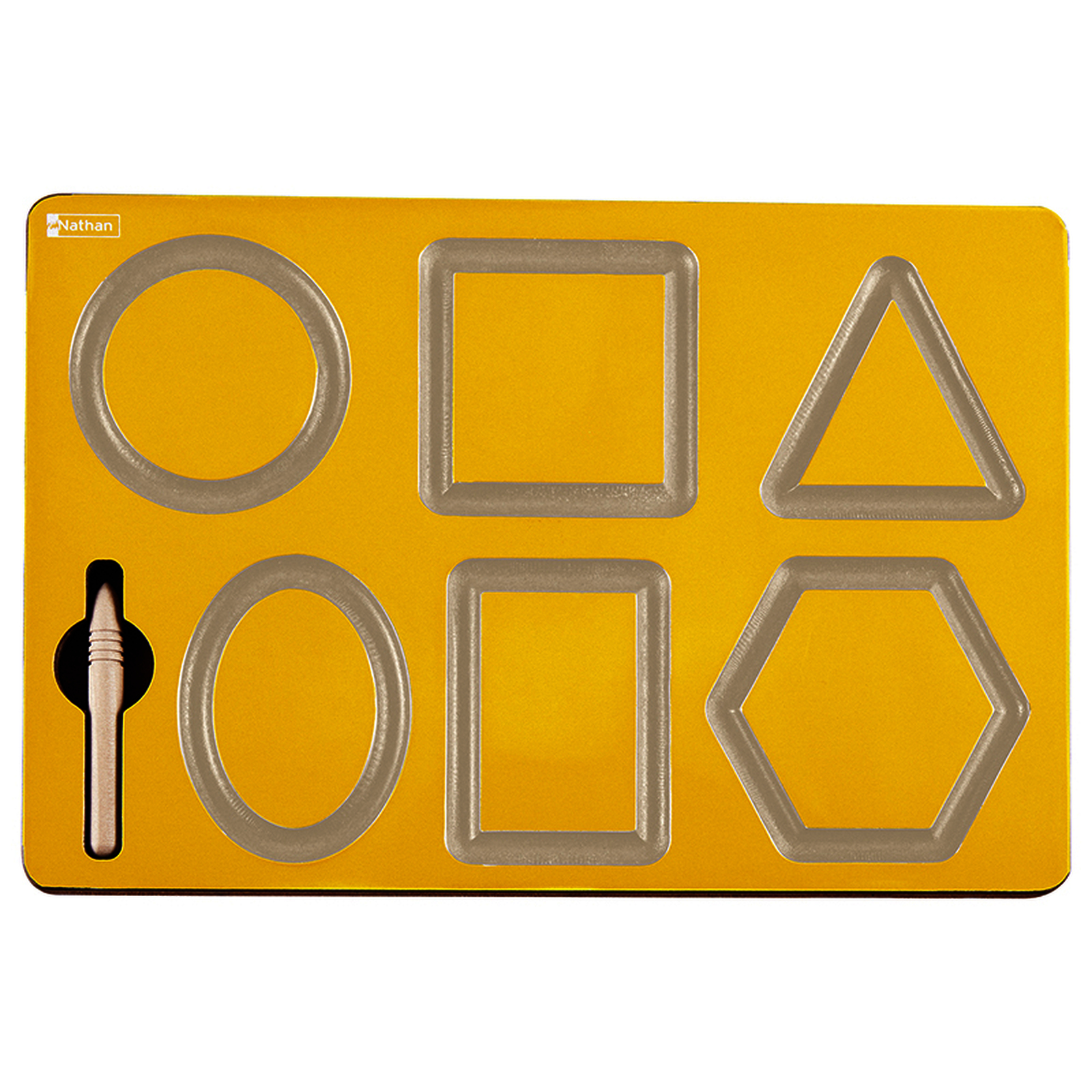 Ce matériel en bois permet le travail sur la reconnaissance des 6 premières formes géométriques par le toucher en creux puis avec le stylet.Support en bois pour s'entraîner aux tracés de base des 6 premières formes géométriques par le toucher en creux, puis avec le stylet.