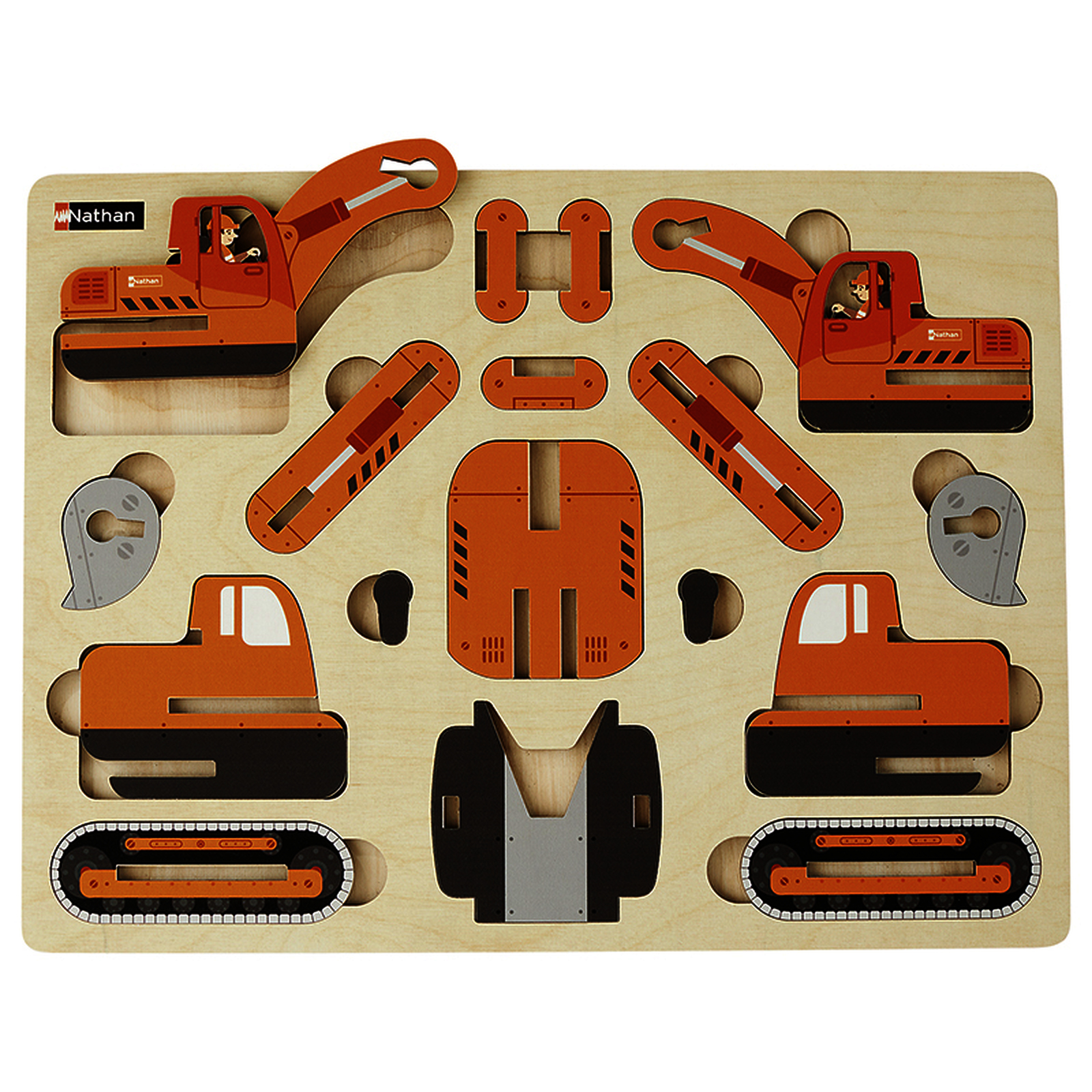 17 pièces en bois à assembler selon le schéma de montage pour construire la pelleteuse.Des éléments en bois découpé et verni, à assembler selon le schéma de montage en quelques étapes, indiqué au dos du plateau. Démontage facile et rangement par encastrement simple des pièces sur le plateau.• 17 pièces et 1 plateau avec schéma de montage au dos.