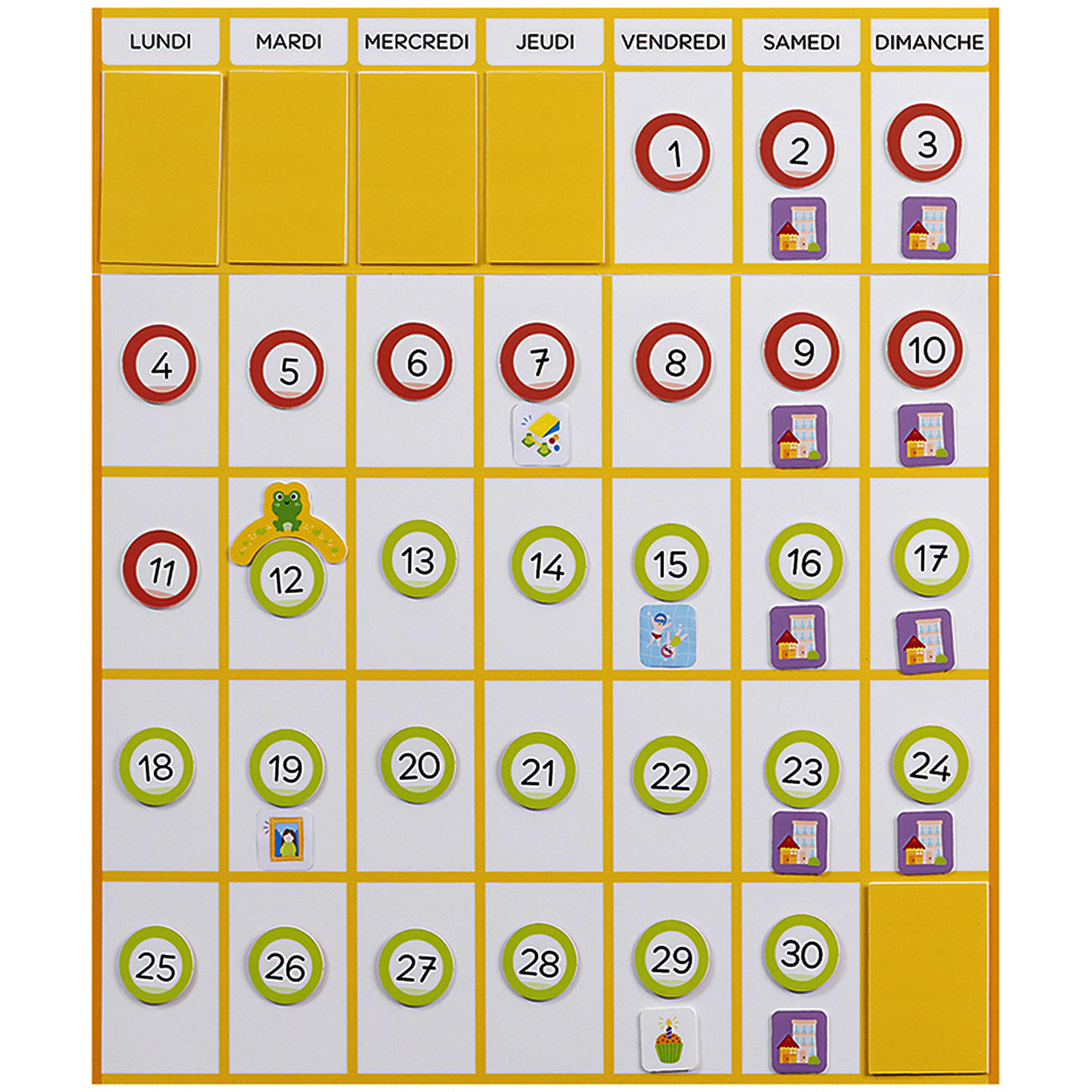 Calendrier magnétique à construire est un outil collectif qui privilégie la manipulation pour rendre les élèves acteurs de la construction du calendrier de la classe.